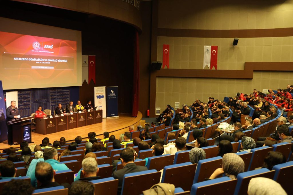 Düzce Valiliği, Düzce Belediyesi, Düzce Üniversitesi ve AFAD Başkanlığı iş birliğiyle düzenlenen “Düzce’den Türkiye’ye Afetlerde Gönüllülük ve Liderlik Sempozyumu” Cumhuriyet Konferans Salonu’nda gerçekleştirildi.